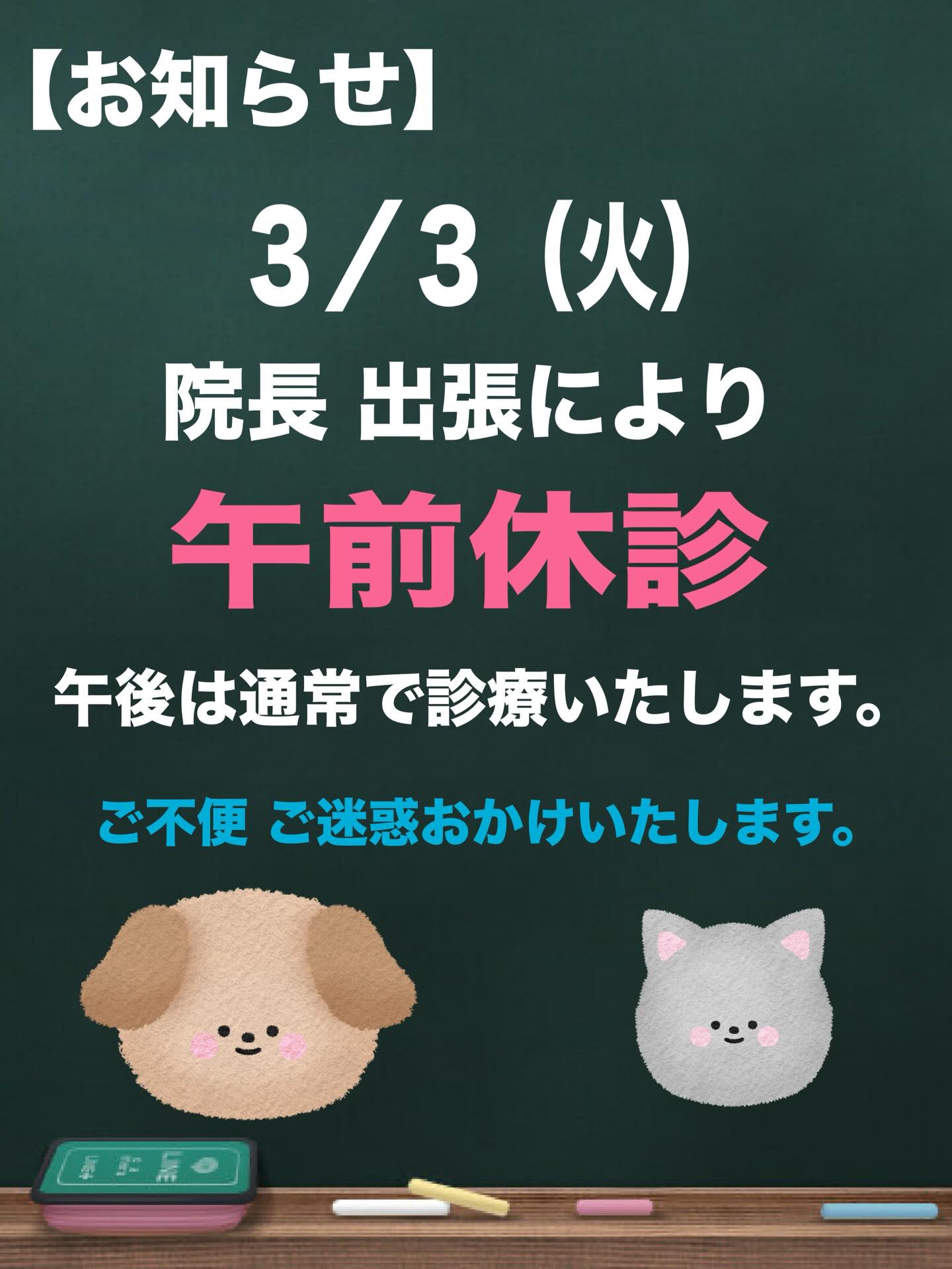 診療時間 午前9:00-13:00 午後16:00-19:00 日曜・祝日9:00-13:00